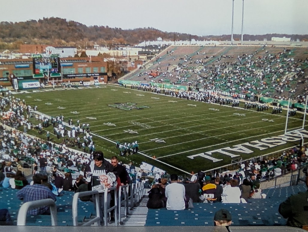 My dear wife, Carrie, and I have a soft spot for Marshall University. We have seen more games at The Joan (Joan C. Edwards Stadium) than I can recall. We had season tickets in 2010. Remember that UNREAL catch by WR Aaron Dobson, the one where he caught it with his hand turned backwards, against East Carolina in 2011? I saw it. That was the most amazing thing I have seen on a college football field.