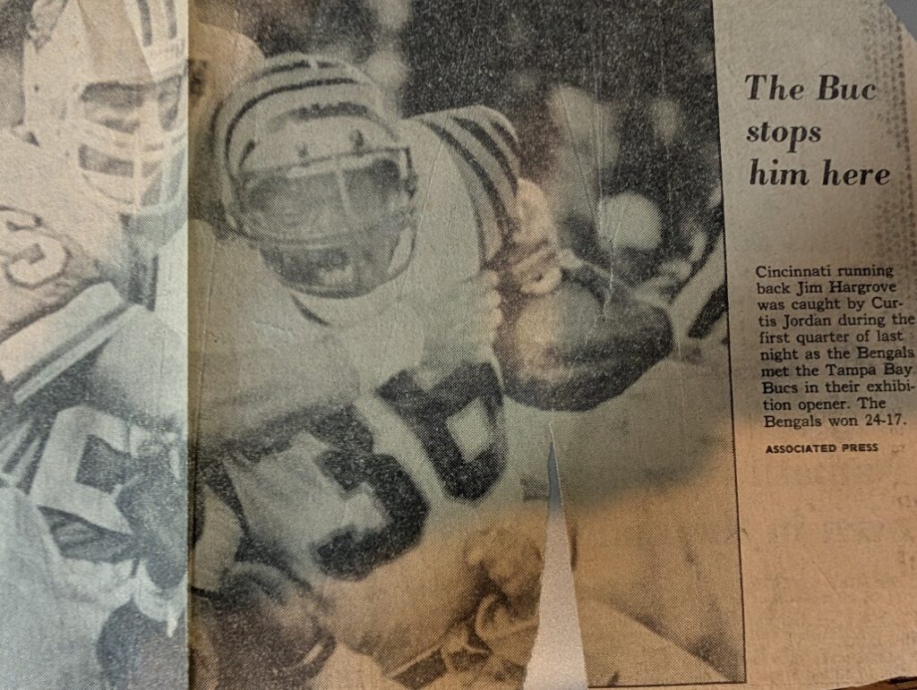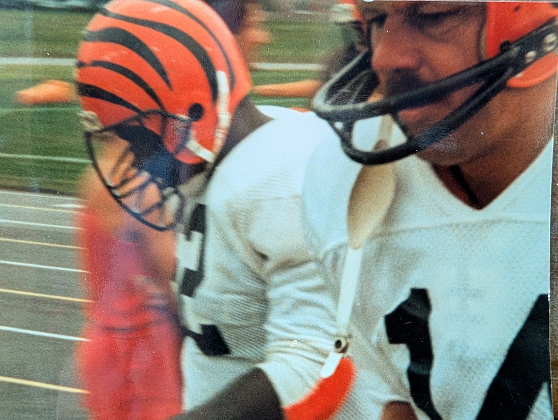 This was the first glimpse I ever saw of the Bengals new striped uniforms in 1981 after a preseason game. I was fan long before that happened. The Bengals were my team. Growing up Ken Anderson was my football hero. He played for the Bengals from 1971 to 1986.