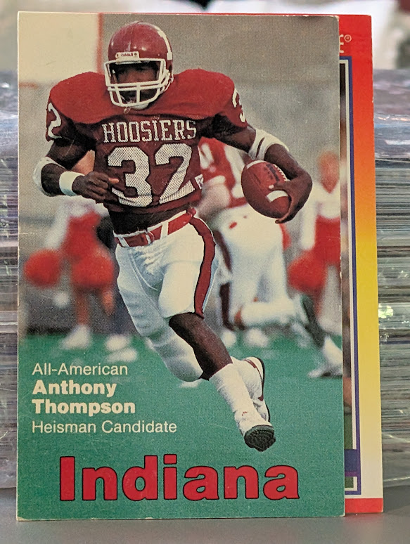 I know Memorial Stadium in Bloomington better than I know most places. When I look out before a game, I can still see the likes of Mike Harkrader, Duane Gunn, Van Waiters, Tim Clifford, Pete Stoyanovich, Chuck Razmic, Courtney Snyder, Joe Norman, Mark Hagen, Tim Wilbur, Alex Smith, Chris Dittoe, Thomas Lewis, and so many more. We don’t have time. But we do need to mention Anthony Thompson. The 1989 Maxwell Award winner and runner-up for The Heisman Trophy, AT is the only Hoosier in ANY sport to have his number retired. And for good reason.