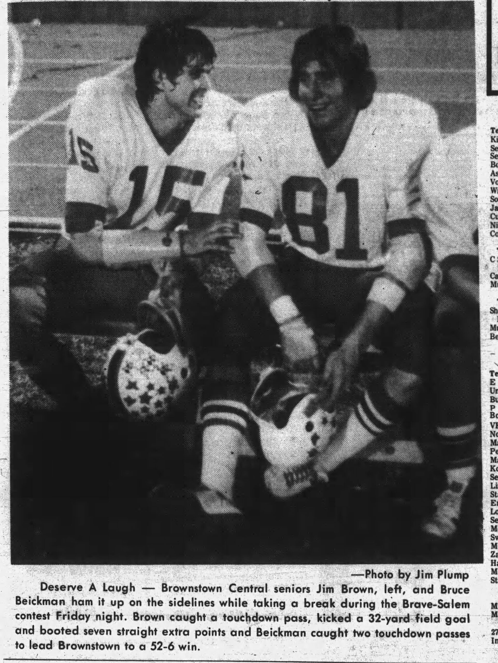 On a perfect autumn night in 1982, I was one of the North Harrison Cougars riding home from Brownstown Central. That night the 6-1 Cougars beat a 7-0 Braves team on their home turf by a score of 27-14. Never before or since have I heard such laughter, team-love, and accomplishment on the bus ride home.
