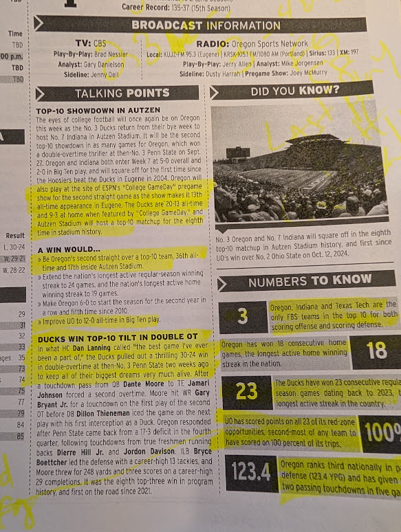 This Indiana Hoosier team is ranked #2 in the country in both the AP and Coaches Polls. With a record of 7-0, the Hoosiers are looking for their 14th consecutive victory at home. Coach Cignetti has a record of 18-2 in his first twenty games as the head coach of the Indiana Hoosiers.